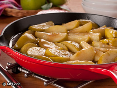 In a large skillet, over medium-high heat combine apple juice and apples and cook for 8 to 10 minutes or until fork tender, stirring occasionally. Remove apples from skillet to a large bowl, leaving the liquid in the pan.