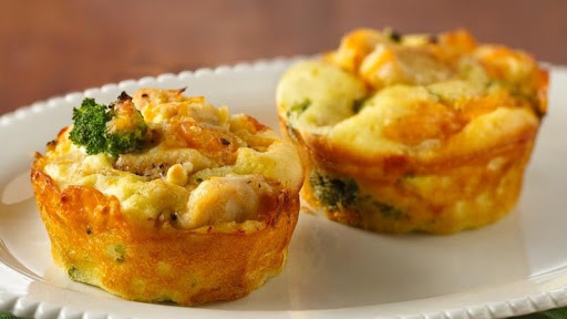 Spoon 1 tablespoon baking mixture onto chicken-broccoli mixture in each muffin cup.