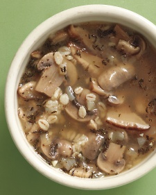 In a large pot, melt butter over medium-high. Add onion, garlic, and thyme; season with salt and pepper. Saute until onion is softened, about 6 minutes. Add button mushrooms and cook until beginning to soften, about 8 minutes. Add broth, 4 cups water, and shiitake mushrooms. Bring to a boil and cook until all mushrooms are tender, 12 to 15 minutes. Add barley, reduce to a simmer, and cover. Cook until barley is tender, about 12 minutes; season with salt and pepper.