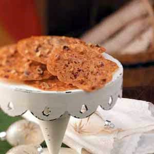 Bake at 350° for 11-12 minutes or until center and edges are browned and lacy. Allow cookies to cool completely before carefully removing from foil. Yield: 3 dozen.