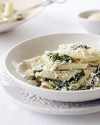 Meanwhile, in a large deep skillet, heat the olive oil. Add the scallions and sage and cook over high heat until lightly browned, 2 to 3 minutes. Add the spinach in large handfuls and cook, stirring, until wilted. Add the pasta, butter and ricotta and toss. Add 3/4 cup of the reserved pasta cooking water and the Parmigiano and season generously with salt and pepper. Cook over moderately low heat, tossing, until the sauce is thick and creamy, adding more of the pasta water as needed. Transfer the pappardelle to bowls and serve right away, with grated Parmigiano.