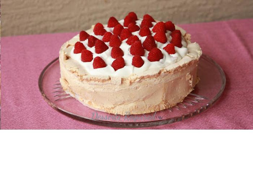 Use a small metal spatula to go around the edge of the springform, keeping the pan closed. If there are any holes in the shell, move some of the meringue around to cover them.