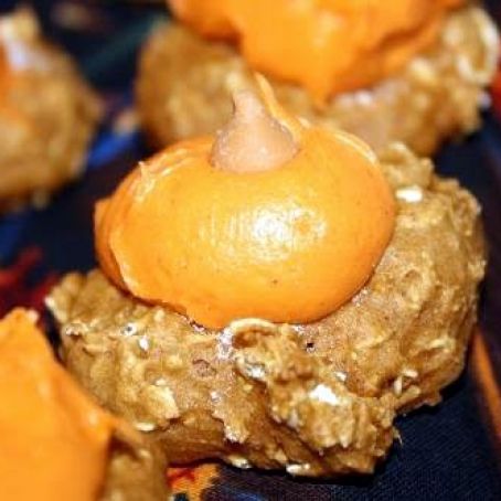 To make frosting, cream all ingredients, except butterscotch chips. For regular cookies, spoon frosting into your thumb's indentation. If making the pumpkins, use a cookie scoop, and mound the frosting on each cookie. Top with a butterscotch chip for a stem.