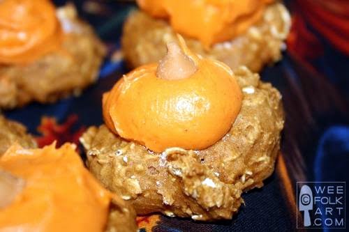 Recipe makes 5 dozen cookies. If you are making pumpkins on top of the cookies, you will only have enough frosting for 3 1/2 dozen cookies.