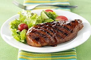 GRILL chicken 3 min. on each side. Brush with barbecue sauce; grill 2 min. on each side or until done (170ºF).