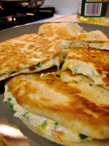 9. Repeat 5-7 for the second tortilla and leave it in the pan.