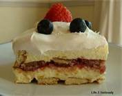 Mix gelatin and hot water, stir until dissolved add ice until melted. Combine next 3 ingredients, sugar, zest cream cheese and blend well. Gradually beat in gelatin mixture. Whisk in cool whip. Pour 1/2 over wafers. Put another layer of wafers. Microwave raspberry preserves and spoon over wafers. Pour remaining mixture over wafers. My variations: Put another layer of wafers, more raspberry preserves, skip fruit. OR: Turn out on serving dish put raspberry preserves on what was the bottom wafers skip fruit. Or skip extra raspberry preserves and put fruit on it. I went the cheaper way and loved the extra raspberry flavor.