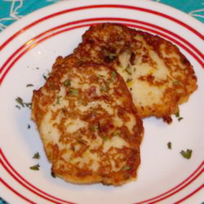 "Potato Cakes are great for breakfast. Mashed potato cakes with a cheese surprise in the middle."