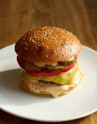 4. Heat a large skillet set over medium-high heat until hot but not smoking, about 1½ minutes. Add the oil and the burger patties and cook for 2 minutes, then reduce the heat to medium and continue to cook until the burgers are nicely browned, 3 to 4 minutes longer. Use a spatula to flip the burgers over and cook until the other side is browned and the burger resists light pressure in the center but doesn’t feel completely firm, 3 to 4 minutes longer (for a medium to medium-rare burger).