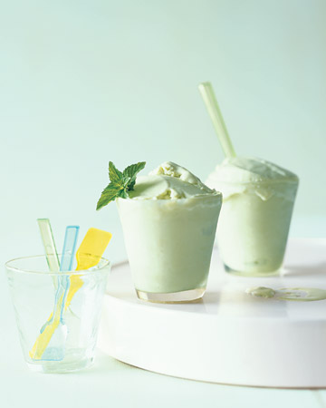 No food coloring required to achieve the cool green hue of this refreshing ice cream: Simply blanch the fresh mint and puree it in the blender to achieve the perfect shade.