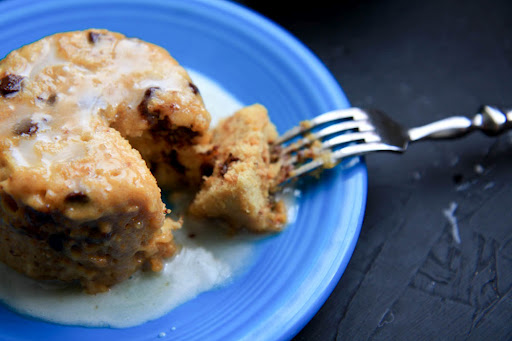 Remove cake from ramekin (or don’t), pour frosting over top. Enjoy!