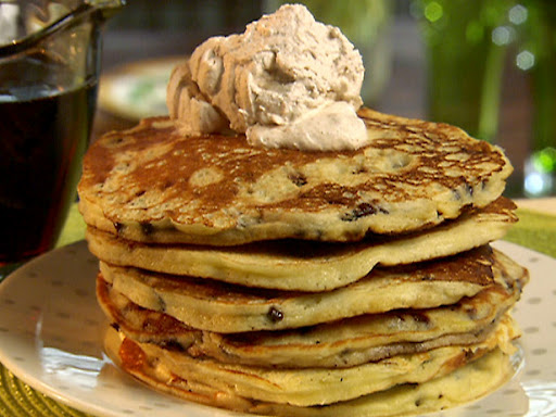 Melt 2 tablespoons butter on hot griddle. Ladle about 1/4-cup batter for each pancake onto hot griddle. Cook pancakes for 2 to 3 minutes, or until tops are covered with bubbles and edges look cooked. Turn and cook the other side. Repeat procedure with remaining 2 tablespoons butter and remaining batter