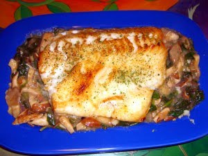 Chilean Sea Bass with Spinach and Mushrooms