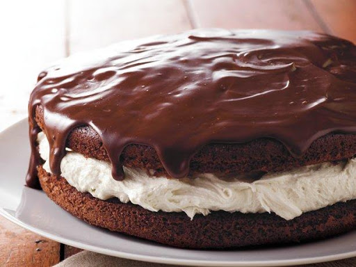 3 In 1-quart saucepan, heat whipping cream over low heat until hot but not boiling. Remove from heat; stir in chocolate until melted. Cool about 10 minutes. Pour ganache onto top of cake; spread with spatula so it just begins to flow over edge of cake. Store loosely covered.