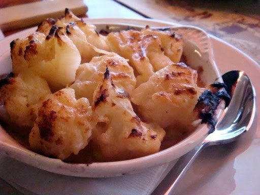 Continue to cook until cream is reduced by 1/2 (about 3-5 minutes). When cream has reached rich, thick consistency, add to bowl with cauliflower, stir to combine, then place into casserole disha dn bake for 15 minutes, until brown. Allow to cool for a few minutes and serve.