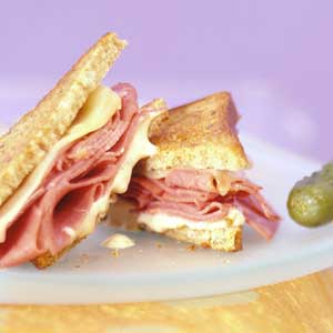 Bake for 8 minutes. Turn, and press lightly with a spatula. Return to oven and bake 5 minutes more or until golden brown. Let cool for 5 minutes; cut in half diagonally. Serve with small bowls of mustards for dipping, if desired. Makes 16 cocktail sandwiches (8 servings).