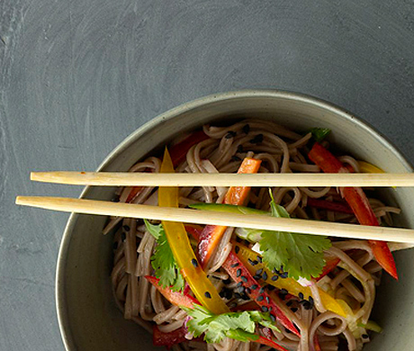 - 8 ounces buckwheat soba (Japanese-style noodles) or vermicelli noodles