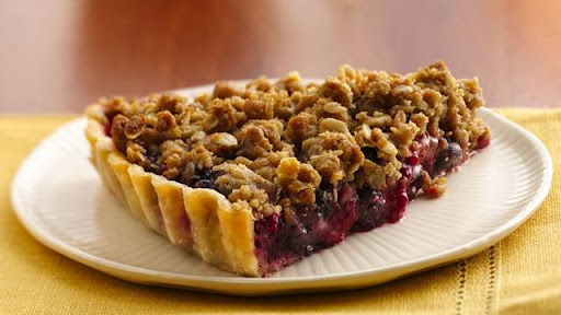 2. Mix the strawberries, and blueberries. Gently fold in jam, flour, and the orange juice. Place in crust.