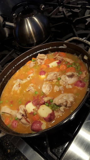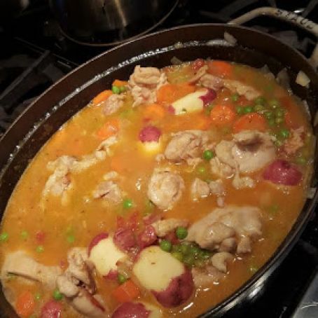 Add back in the bacon, chicken, the peas, and carrotts, cover and simmer 30 min
