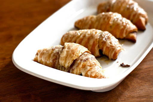 1. Heat oven to 375 degrees. Place the unrolled and separated crescent rolls on a greased cookie sheet. In a small bowl for the filling, mix together the 6 tablespoons of butter, sugar and cinnamon. Evenly spread the cinnamon butter over the crescent rolls and roll up. Place tip side down on the cookie sheet. Bake for 10-12 minutes.