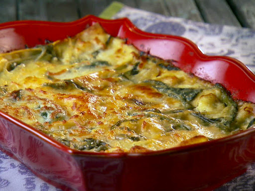Spread about 1/4 of the corn mixture over the bottom of an 11 by 8-inch baking dish. Cover with a layer of 3 lasagna sheets. Spread 1/4 of the poblano mixture and 1/4 of the cheese over the pasta. Repeat the layering 3 more times. Cover with foil.