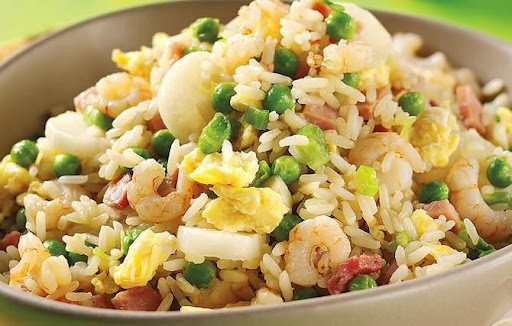 Slice the water chestnuts and ham. Add the water chestnuts, onions and peas to the skillet. Stir-fry until the onions are just softened, about 2 minutes. Add the shrimp and ham. Stir-fry until heated through, about 1 minute longer.