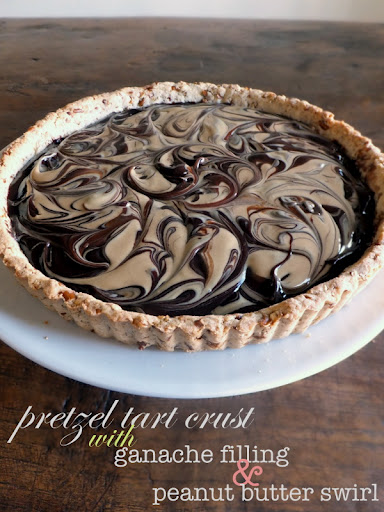 Sweet and Salty Pretzel Tart with Chocolate Ganache and Peanut Butter Swirl