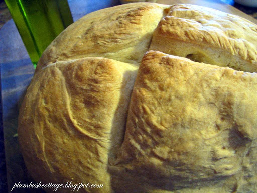 7. Slash tops of loaves with a sharp knife. For a rustic look, sprinkle with flour. Bake about 45 minutes, until loaves sound hollow when tapped on the bottom. Makes 2 loaves, 12 servings each.