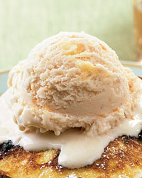 In a medium saucepan, combine the cream and milk. Add the vanilla bean and seeds and peach skins and pits and bring to a simmer. Cover and remove from the heat. Let steep for 20 minutes. Strain the infused cream into a bowl.
