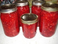 Spoon filling into clean sterilized jars. Fill the jars leaving 1 inch head space.