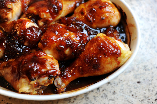 Arrange drumsticks in a single layer on a 13 x 9″ baking pan. Pour sauce over drumsticks, turning to coat. Bake, uncovered, for 40-45 minutes or until chicken is done, spooning sauce over drumsticks while baking. Serves 6.