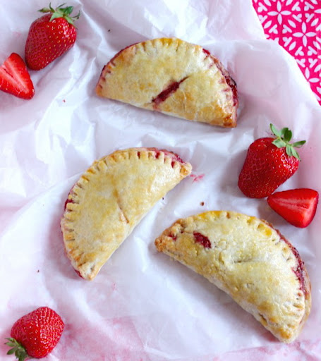 Fresh strawberries are available year-round in many regions of the country, but their peak season is from April to June. This recipe for hand pies, or "half moon" pies, offers a delicious way to take advantage of their abundance. Look for evenly colored, bright-red, plump strawberries whose green caps are still attached.