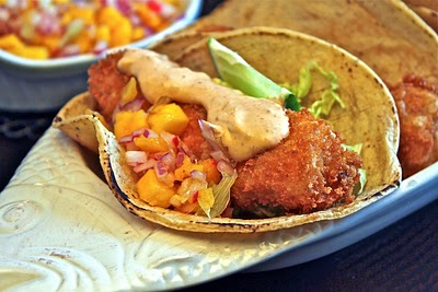 Just before you are ready to fry the fish, lightly toast the corn tortillas over an open flame, on your stove top. Wrap in foil, or place in a covered tortilla dish, and keep warm in the oven.