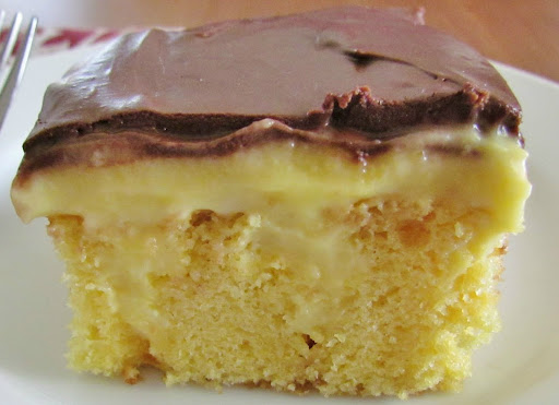 When cake is finished, while still warm, poke holes all over cake intervals using a wooden spoon handle or other similar size object.