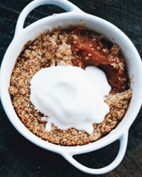 "I think Missouri food seems to have stronger ties to the cooking of the South than the upper Midwest," Paul Virant says. Here, he bakes his simple peach crisps—a classic Southern dessert—in individual ramekins, but the sweet summer fruit and crunchy, buttery topping could be prepared in a single baking dish as well.
