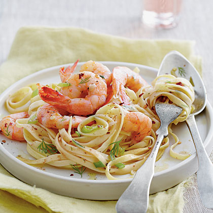 Add hot cooked pasta to sauce in skillet, tossing to coat. Transfer pasta to a serving bowl, and top with shrimp.