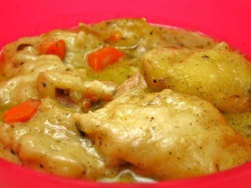 tablespoonfuls of prepared mix into the pot, spacing dumplings as evenly as you