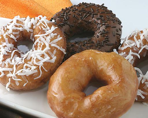 Drop into glaze and coat both sides. Place on waxed paper. For chocolate doughnuts, dip into icing and coat one side. Quickly sprinkle with toppings.