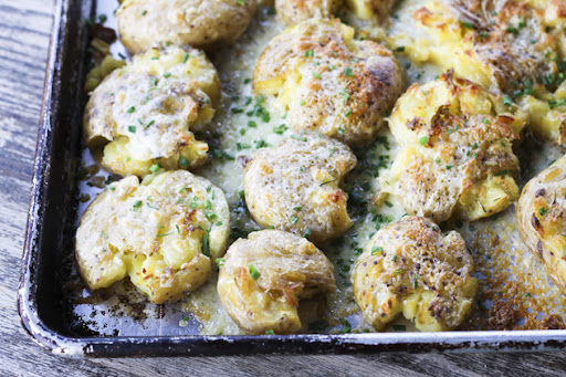 There are things that are worth leaving alone because they’re so good and then there are things that are so good that they demand you mess with them. Take, for example, crash hot potatoes. In their original form, they are boiled potatoes that are squashed, drizzled with olive oil and hit with a handful of herbs, then baked and then broiled to crispy perfection. Based on that theory, I went and did this. And it was great.