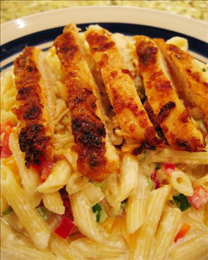 I tasted a wonderful Cajun pasta dish on a kayaking trip and attempted to recreate the delicious flavors from memory,” Mary Spikowski explains from Columbus, Ohio. “Chicken can also be grilled, then sliced on top of pasta.