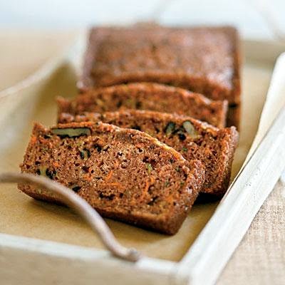 weigh or lightly spoon flour into a dry measuring cup, level with a knife. combine flour and the next 4 ingredients (through salt) in a large bowl, stirring with a whisk. add grated apple, grated carrot, shredded zucchini, and walnuts to flour mixture; toss well. combine canola oil, buttermilk, and eggs in a small bowl, stirring with a whisk. add egg mixture to flour mixture, stirring just until combined. spoon batter into 8 x 4 inch loaf pan coated with cooking spray.