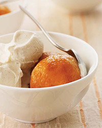 Bring a large pot of water to a boil. Add the peaches and boil just until the skins loosen, 30 seconds; transfer to a large rimmed baking sheet and let cool. Peel the peaches, then halve and pit them.