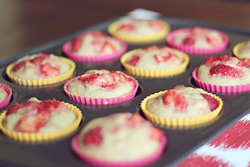 - 1 1/2 1 1/2 1/2 to Strawberries, diced, and patted dry + (optional 1/2 cup strawberries, diced to place on top of muffins)