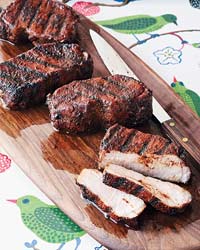Chef Tim Love rubs meat with a bit of sugar to help brown it but finishes the dish over low heat so the sugar doesn't char the outside. Here, he coats pork chops with cocoa and chile powders for a rub that's like a deconstructed version of Mexican mole sauce.