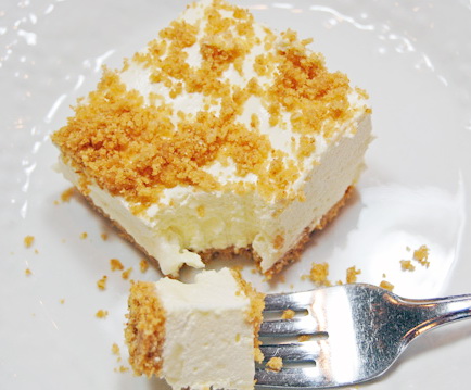 This is the “cheesecake” I grew up with. Unlike the real deal, this one is light with a hint of lemon. It’s also no-bake, so it’s easy to make.
