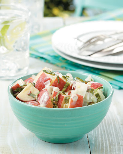 Sweetened condensed milk makes for a sweet, creamy fruit dressing, and a pinch of red pepper flakes keeps it from becoming overly sweet.