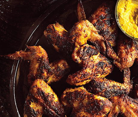 Cooking the wings slowly over medium-low coals and turning them often makes for crisp results; the skin will brown while the meat cooks through. Be sure to begin 1 day ahead; the chicken needs to marinate overnight for the flavors to infuse.