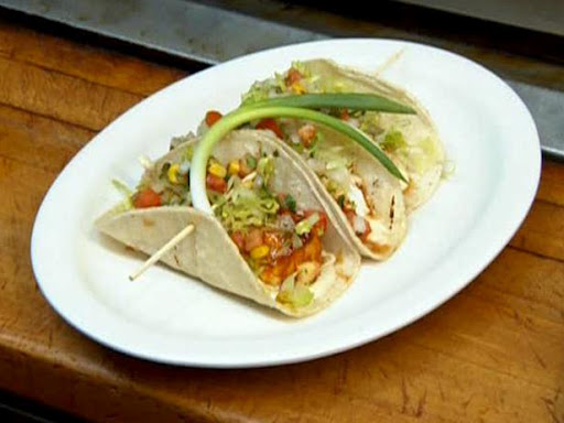For the tacos: Preheat a grill to 350 degrees F. Sprinkle the fish with salt and pepper and grill for 3 to 4 minutes. Flip the fish over and grill for 3 to 4 minutes. Remove the fish from the grill and keep warm.