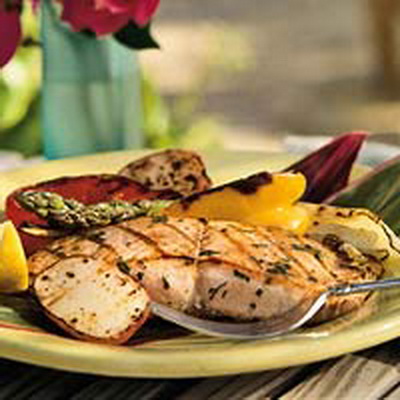 3. Serve with lemon wedge and grilled vegetables, if desired. Makes 6 servings.