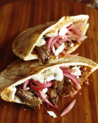 City Winery chef Andres Barrera slow-roasts lamb until tender, then stuffs it into warm pitas along with pickled red onions, feta cheese and a bright-flavored tomato-ginger compote (also great on a burger or cheese plate).